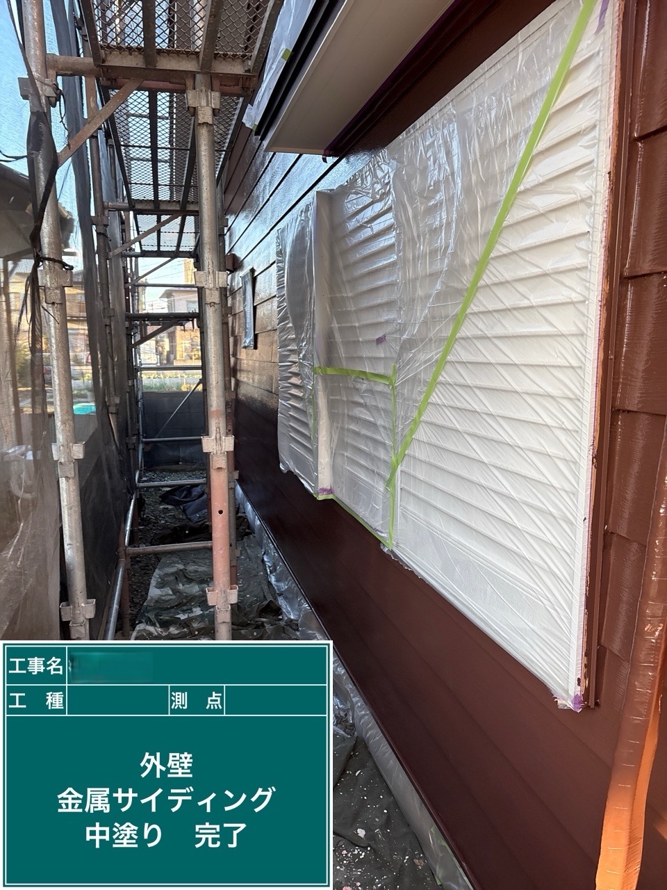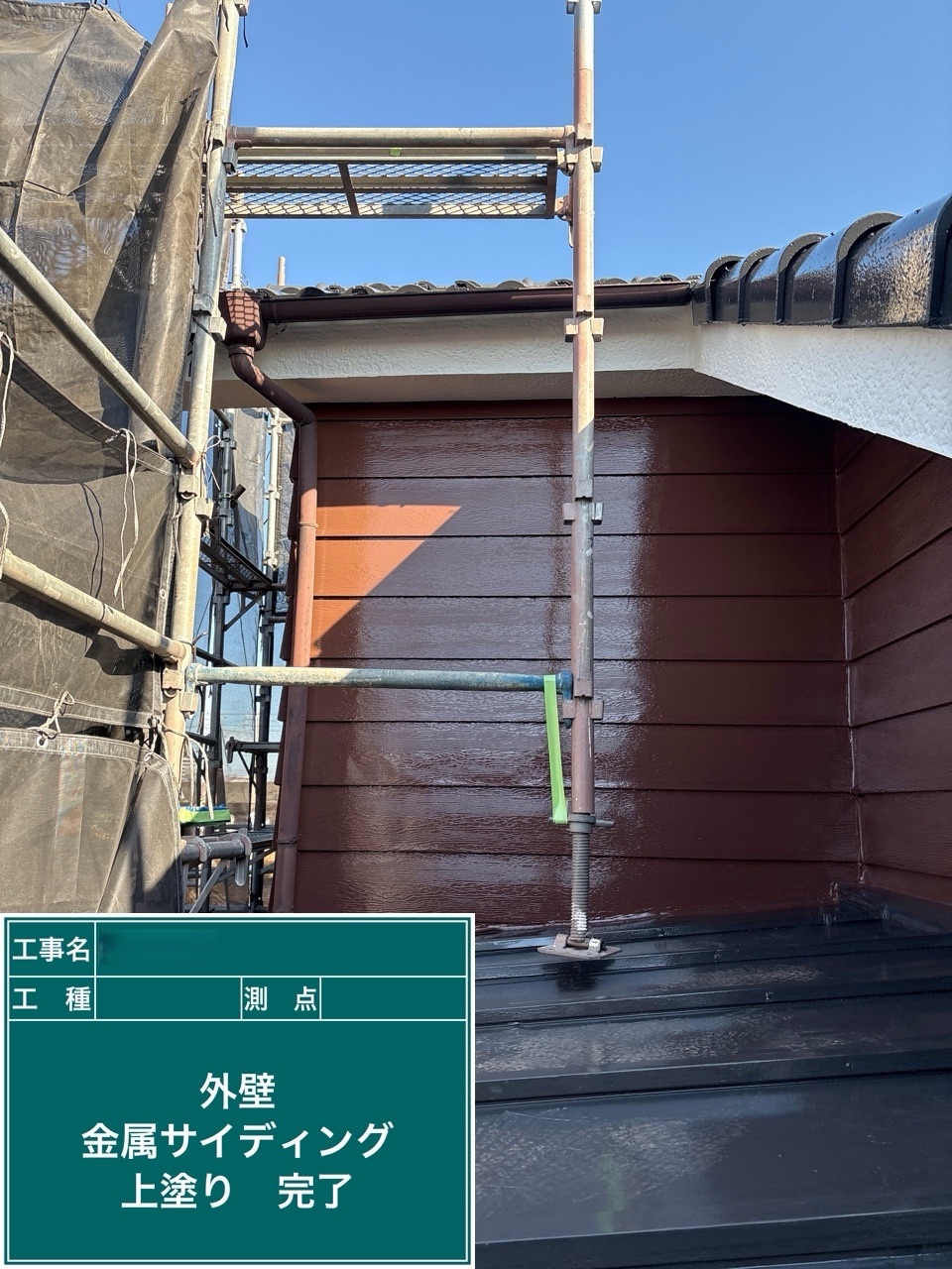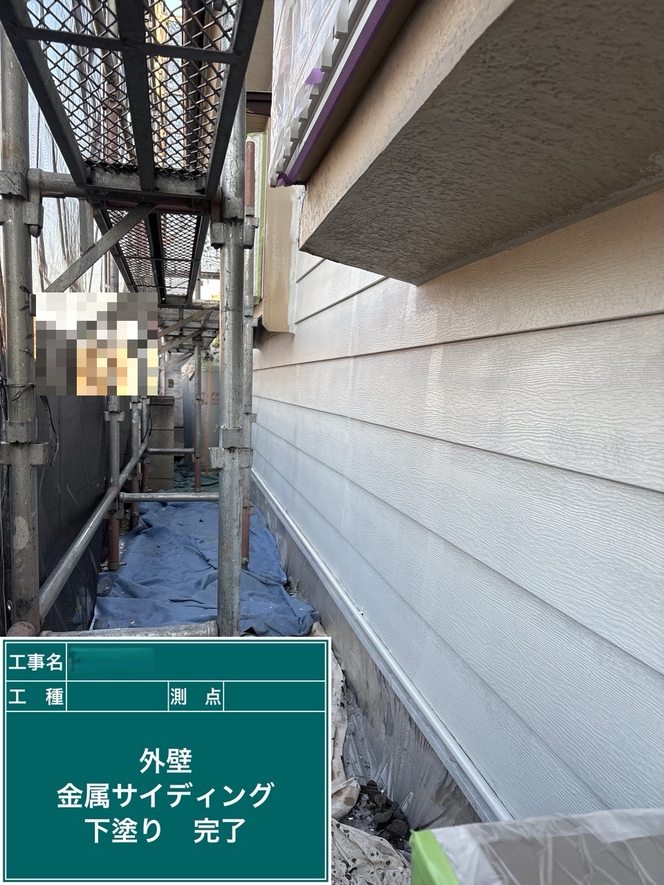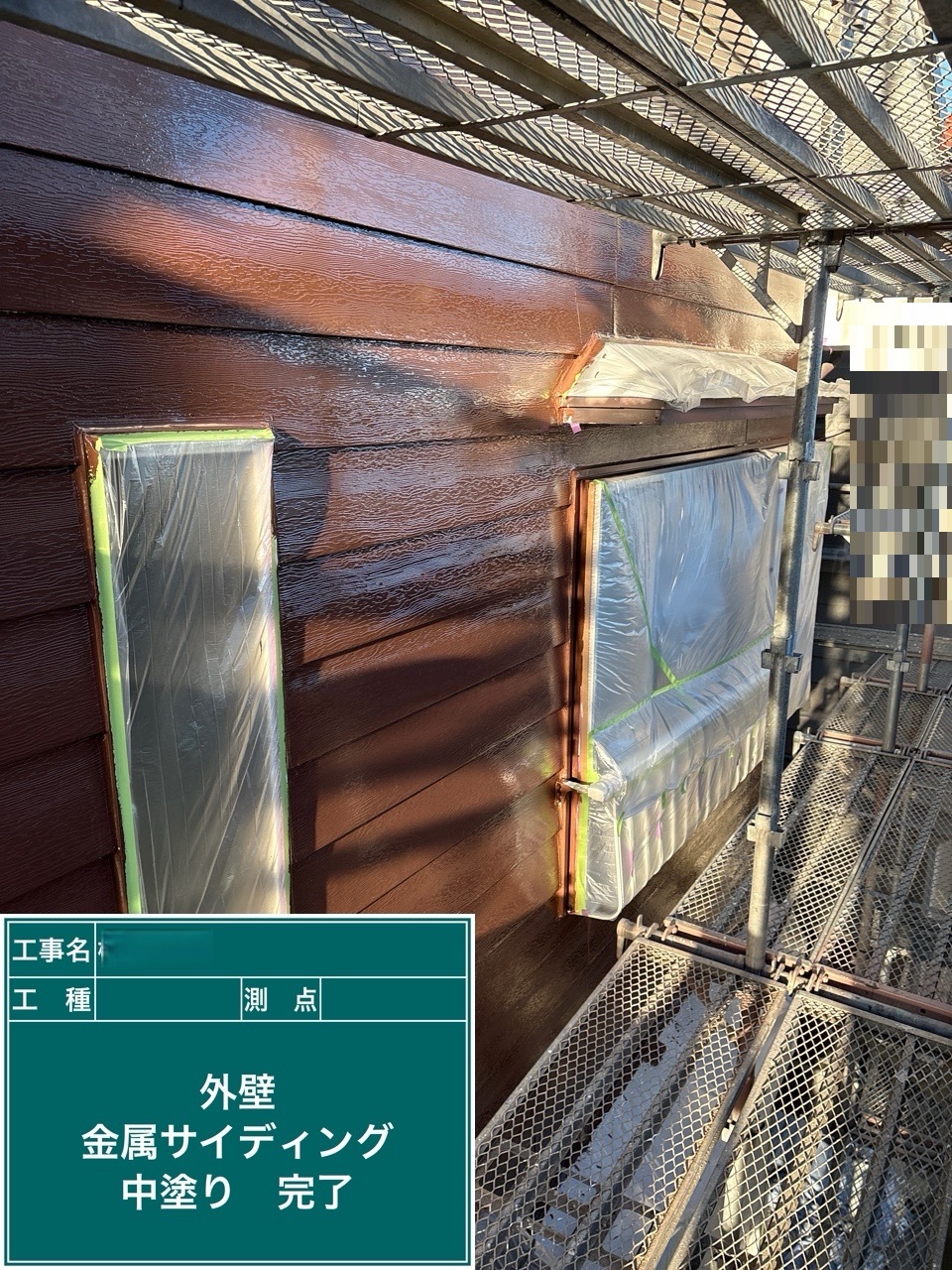 金属サイディング中塗り施工を行いました。