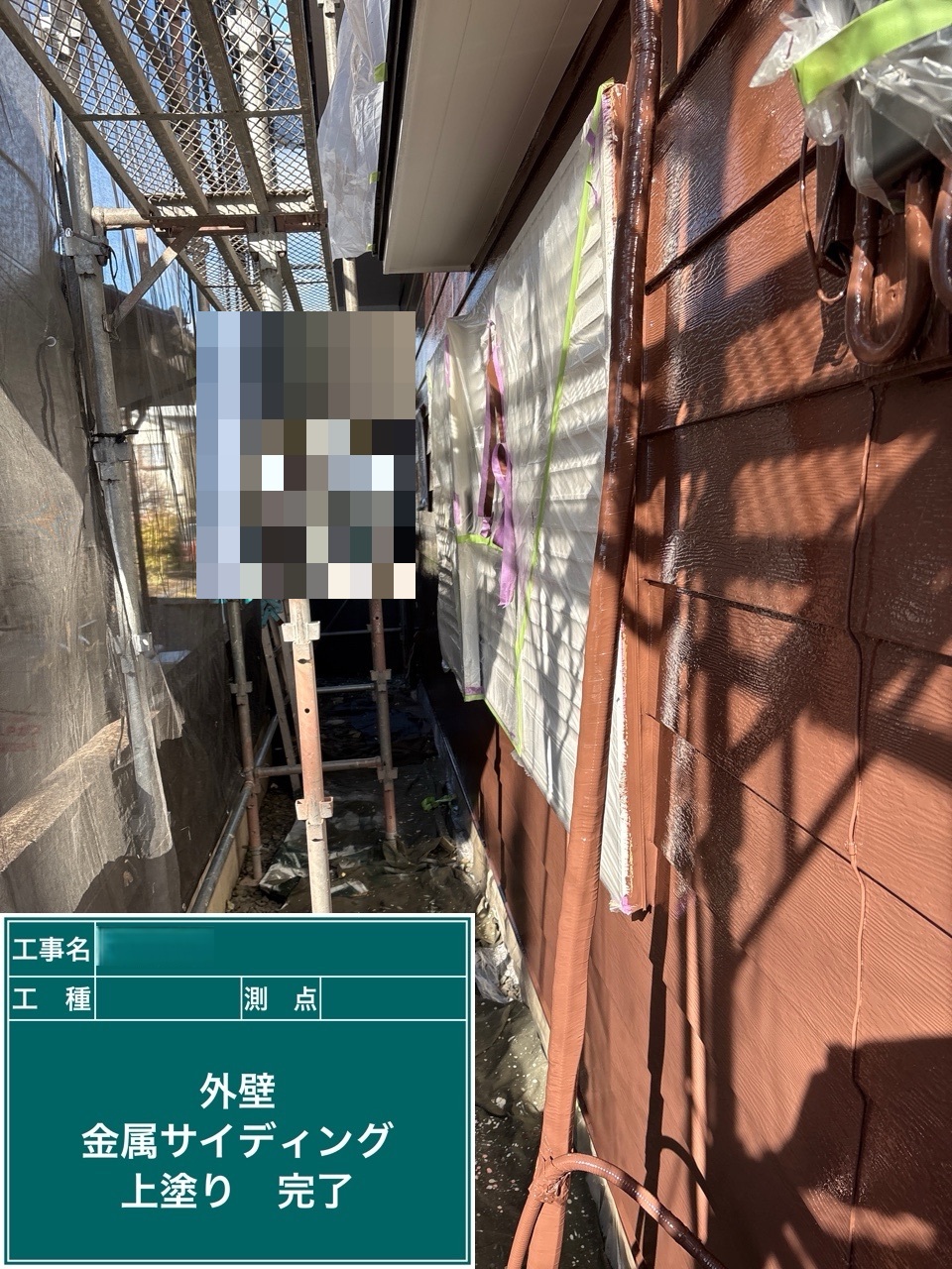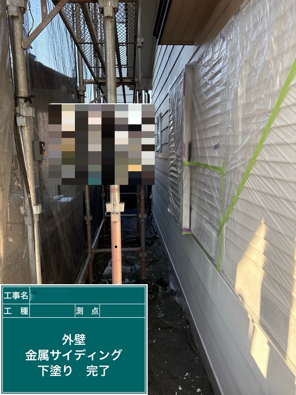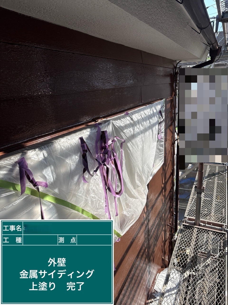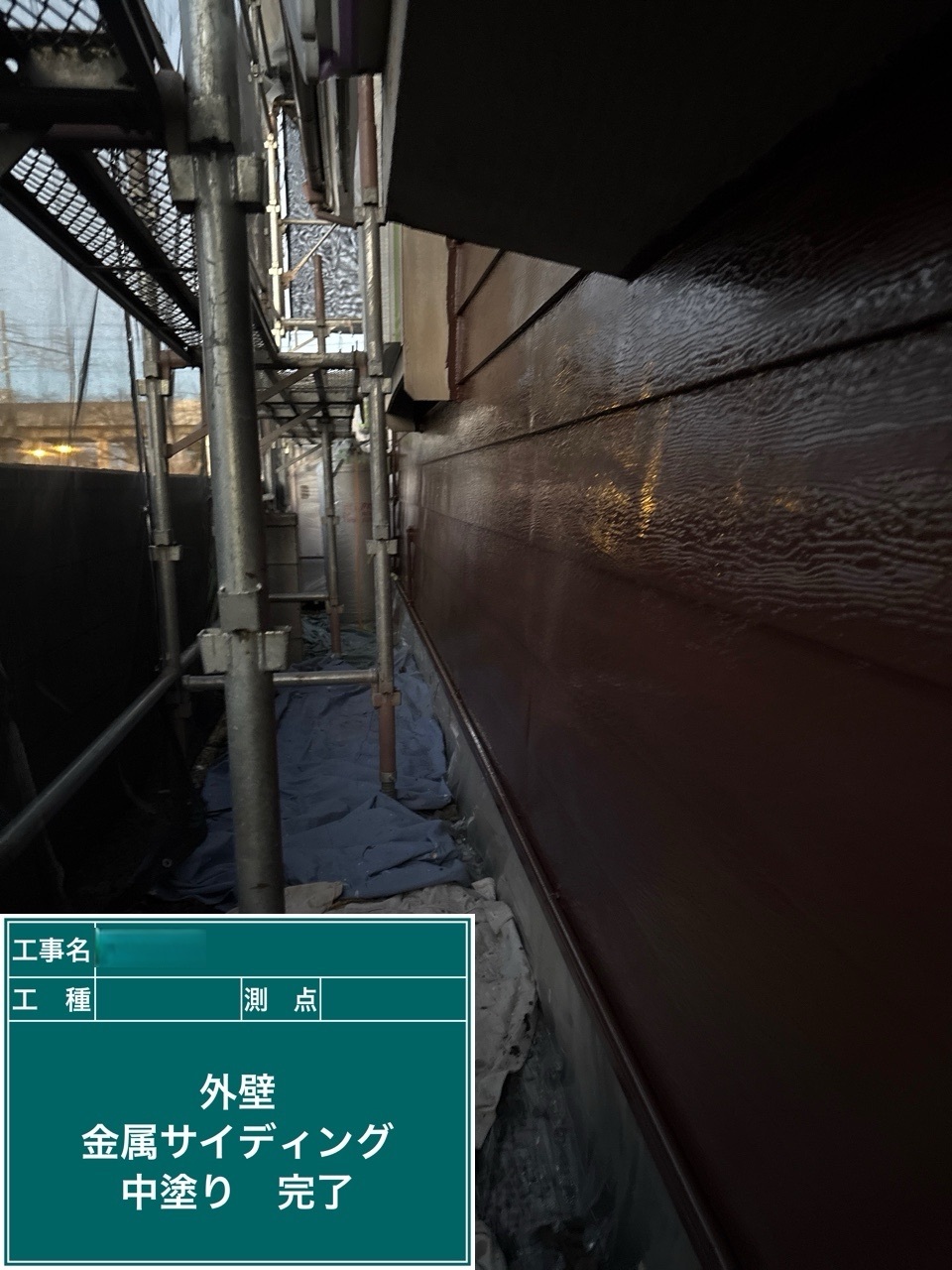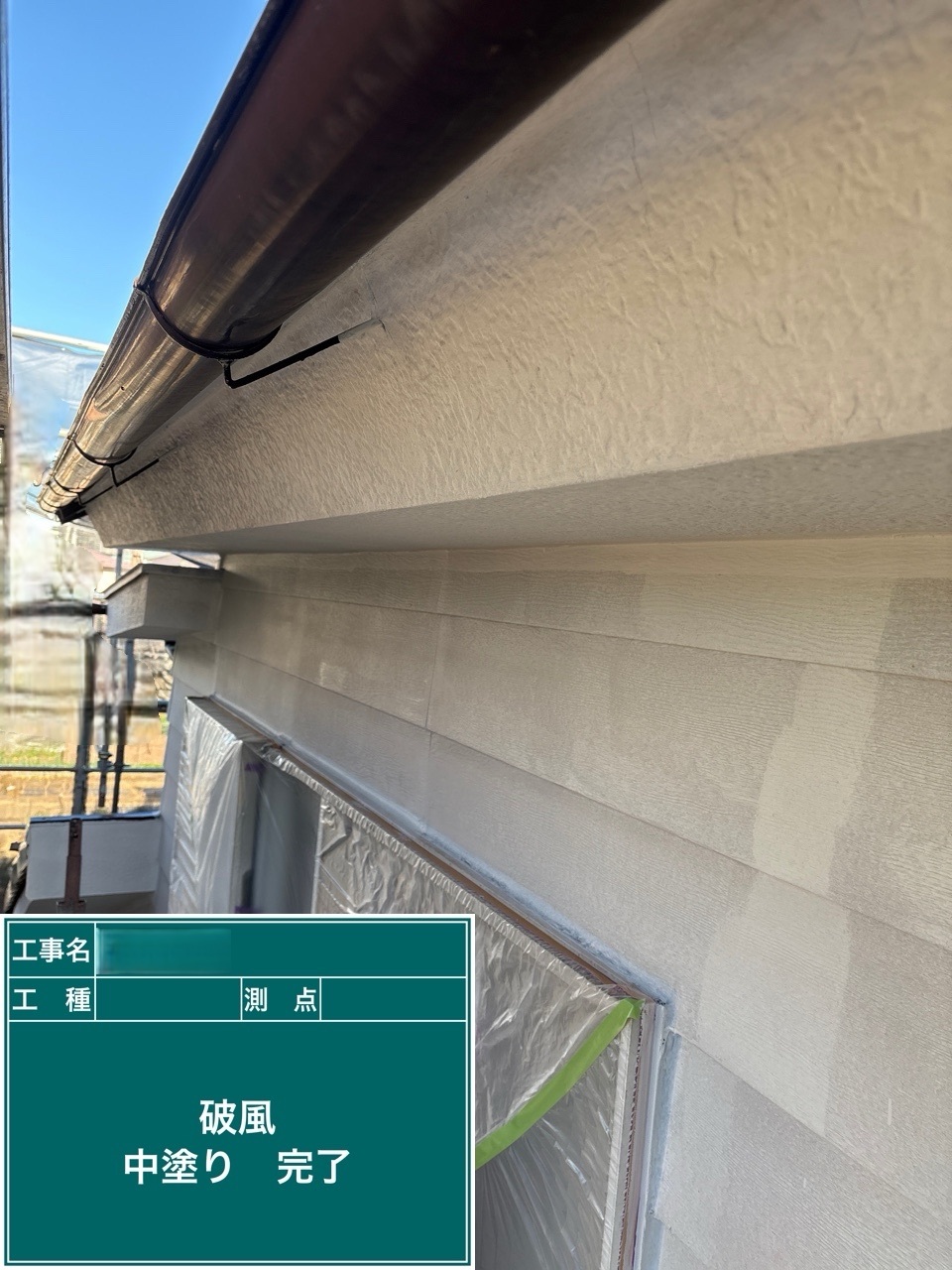 金属サイディング中塗り施工を行いました。