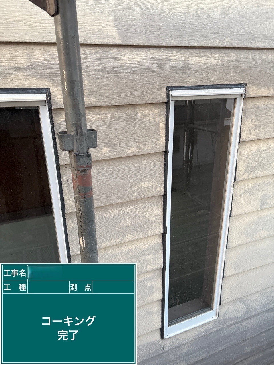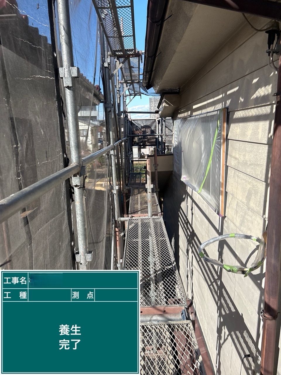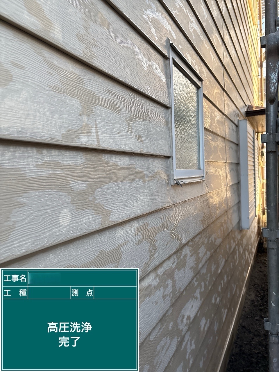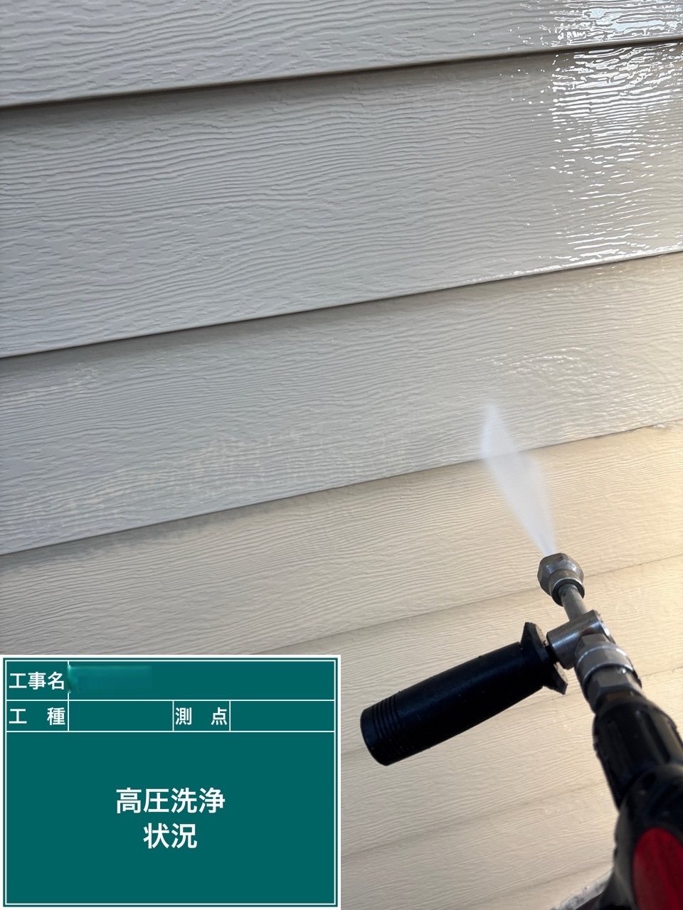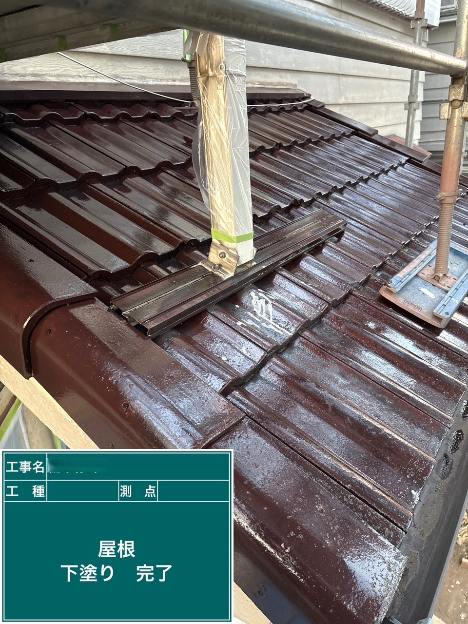 金属サイディング中塗り施工を行いました。