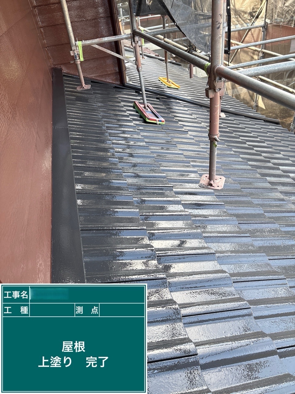 上塗り施工を行いました。