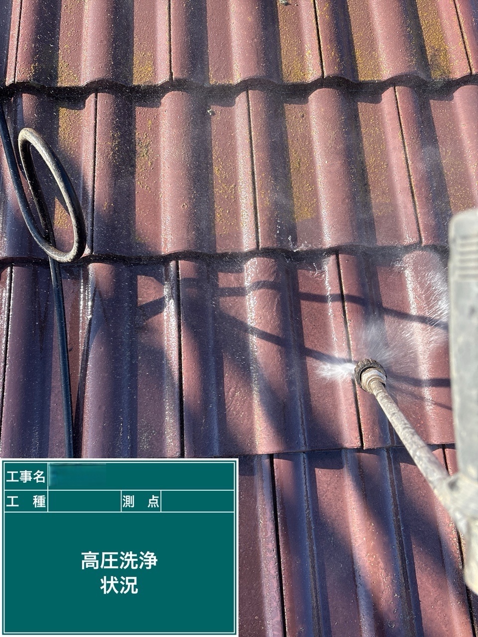 屋根に付着した汚れなどを洗い流します。