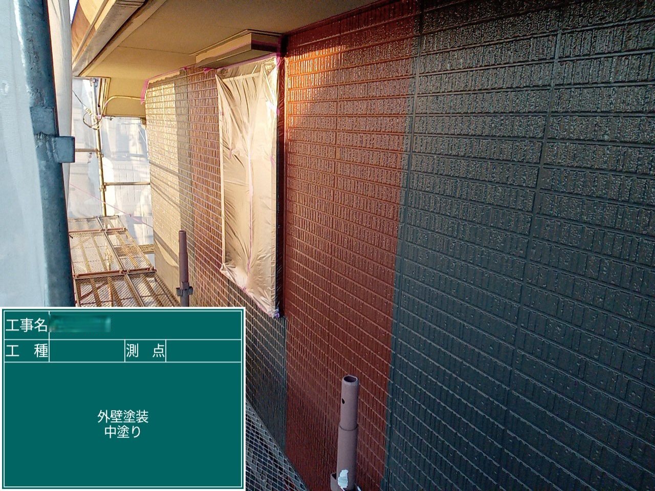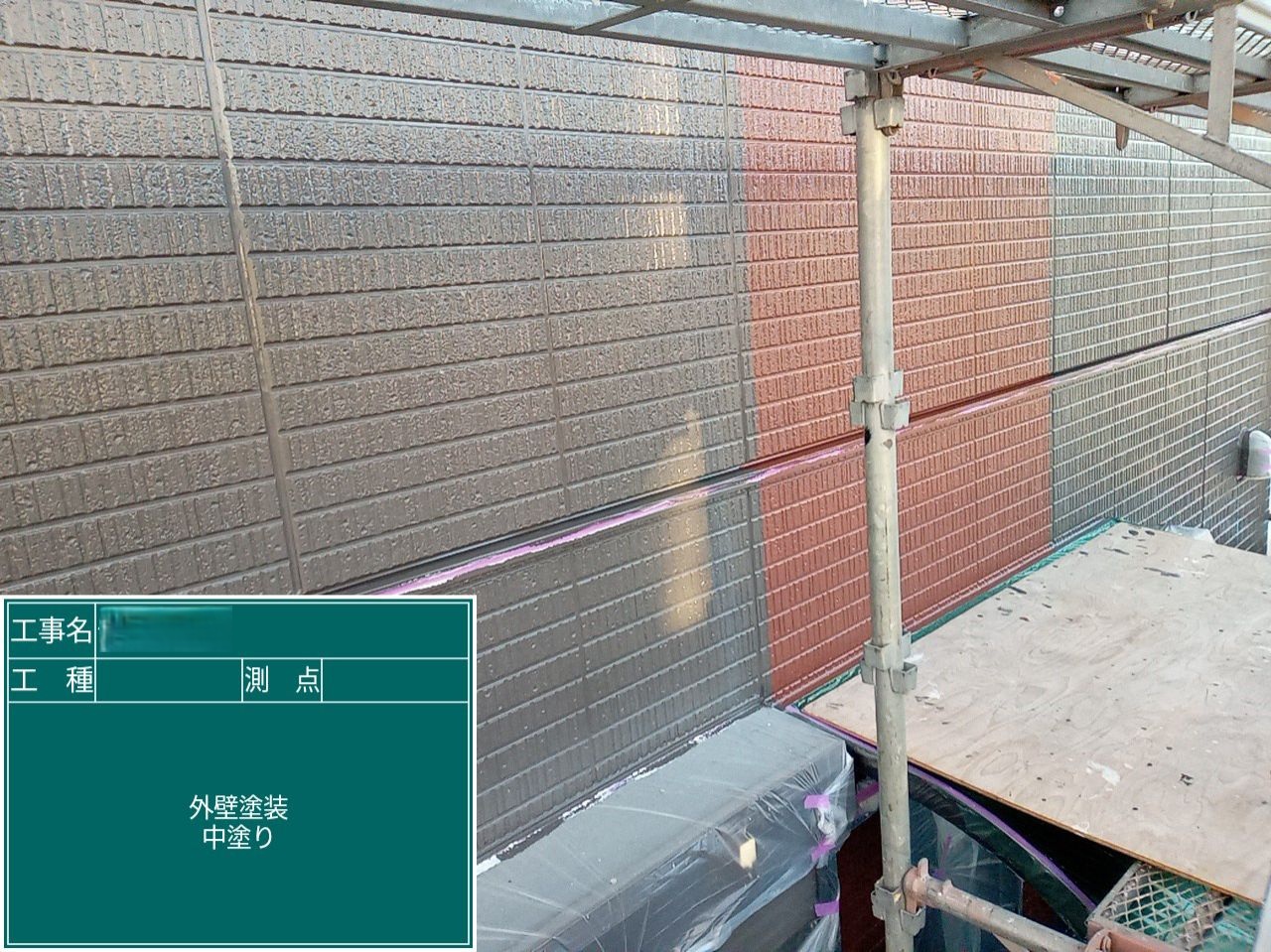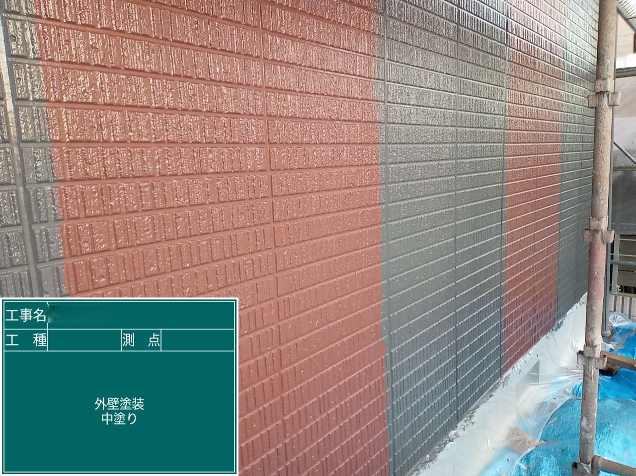 中塗り➡上塗りと2回に分けて塗装する事で性能を耐久年数の間しっかり持続させるために中塗りの塗装が必須です。