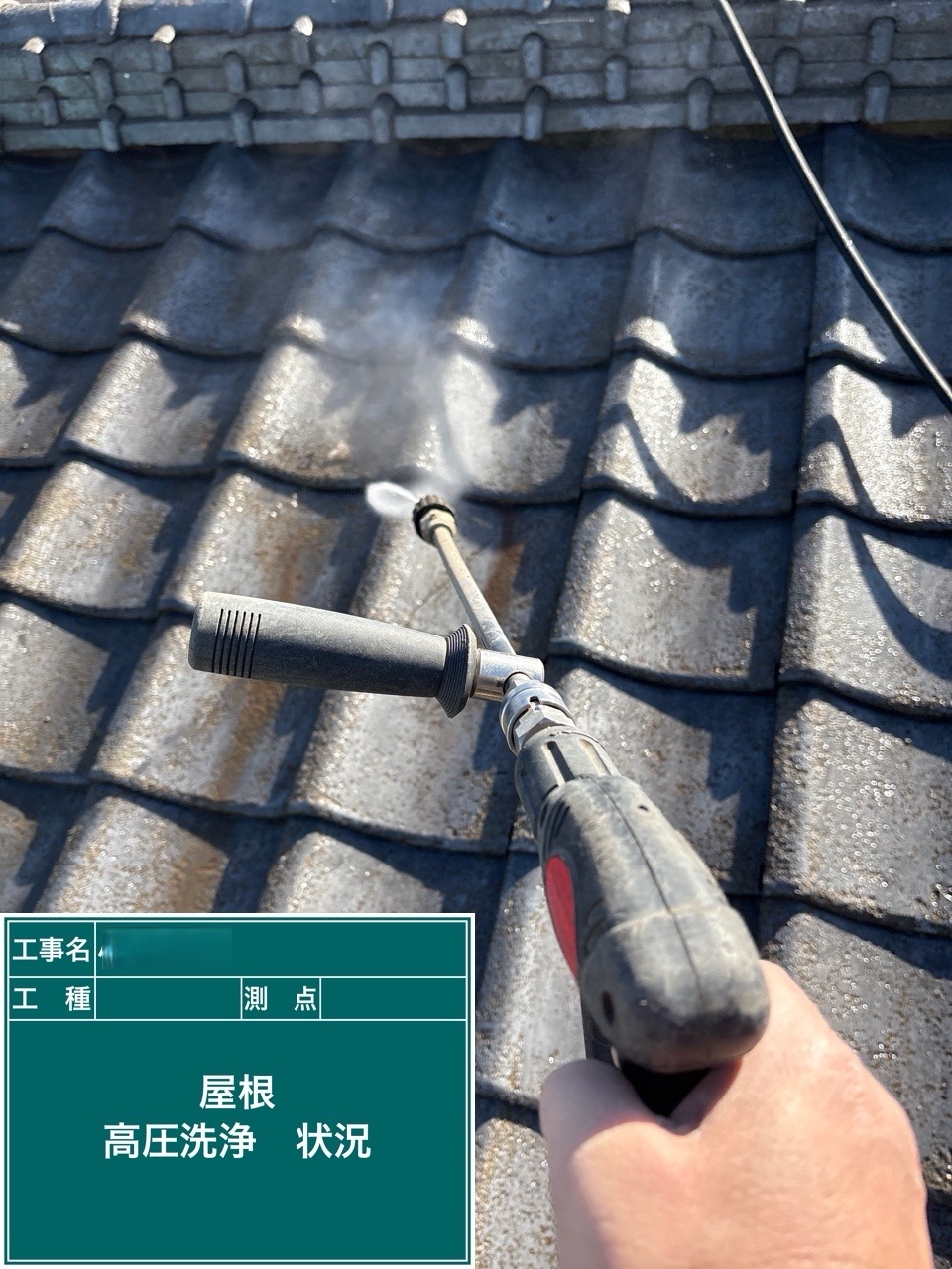 屋根高圧洗浄 屋根に付着した汚れなどを洗い流します。