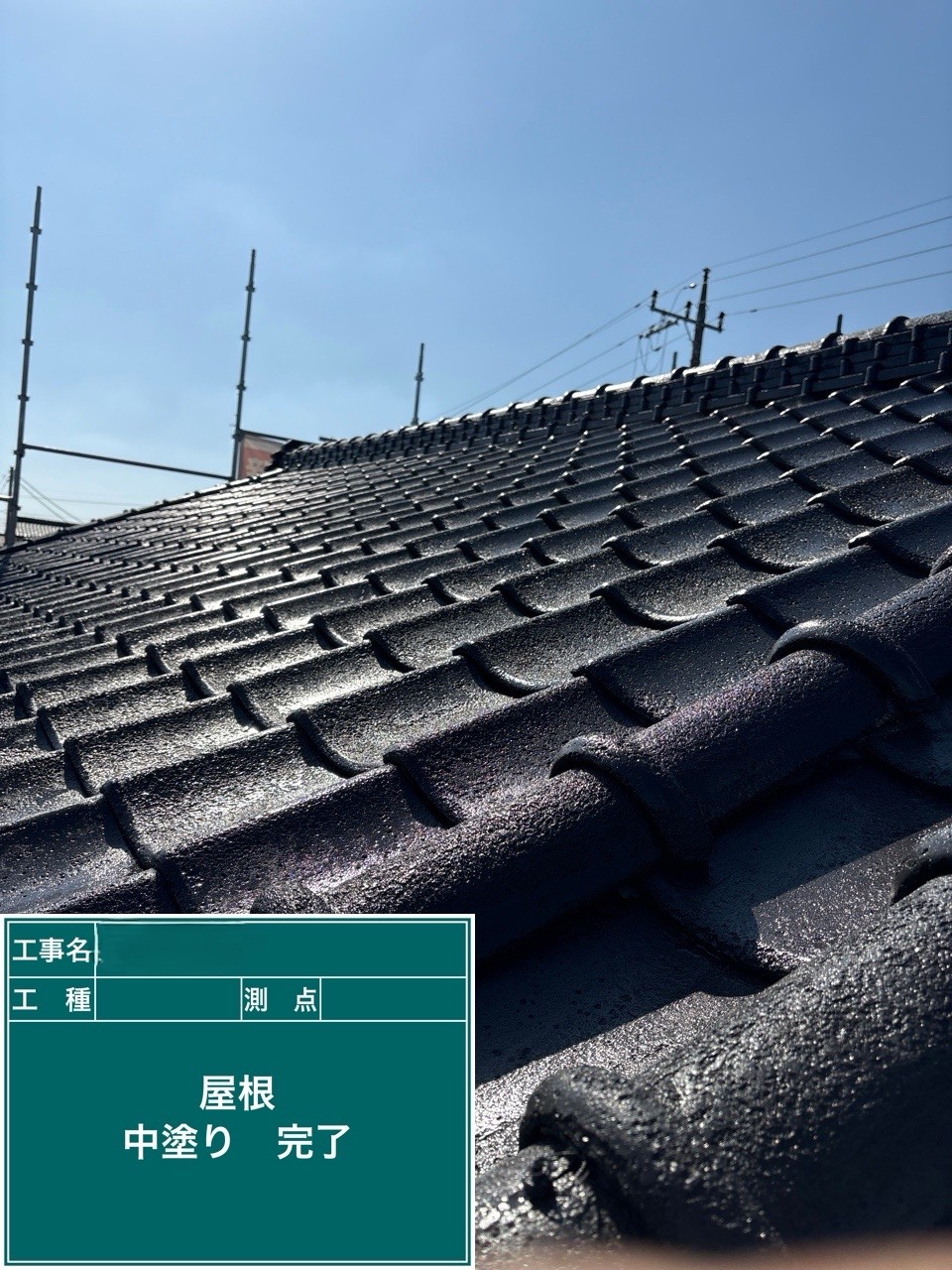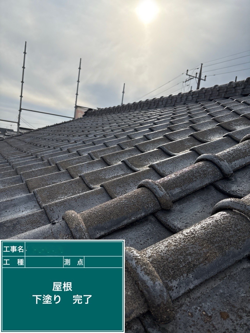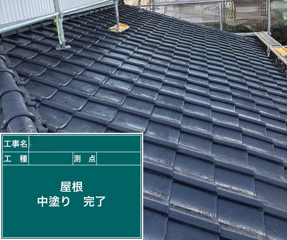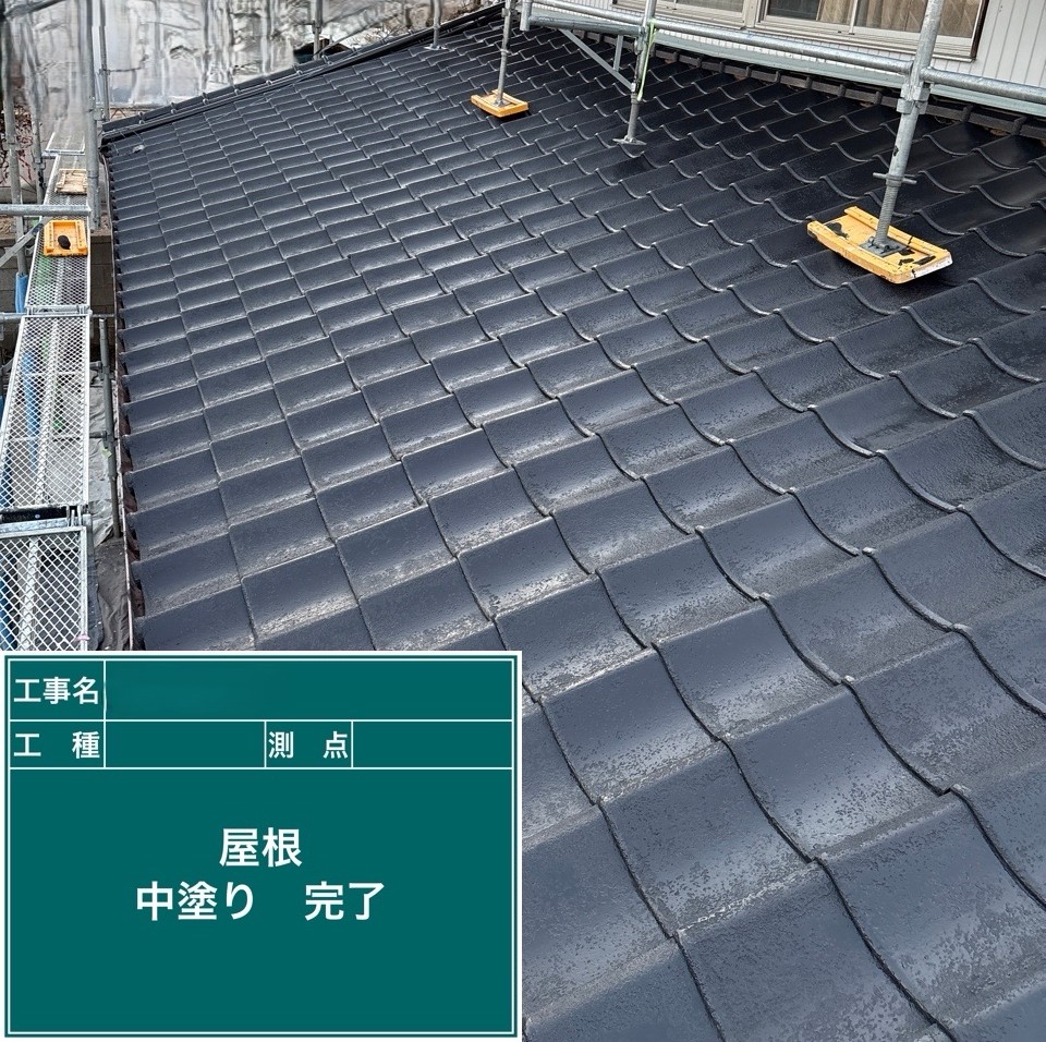 屋根の中塗りを行いました。