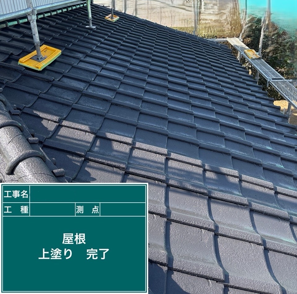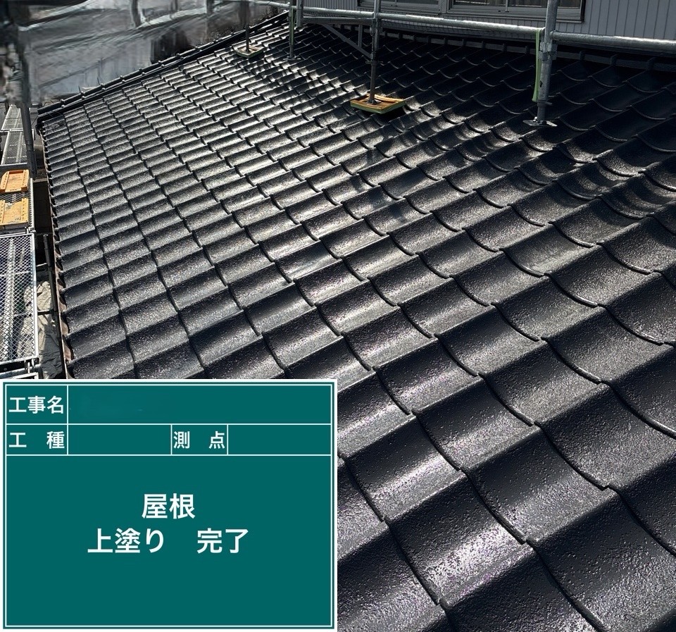 屋根の上塗りを行いました。