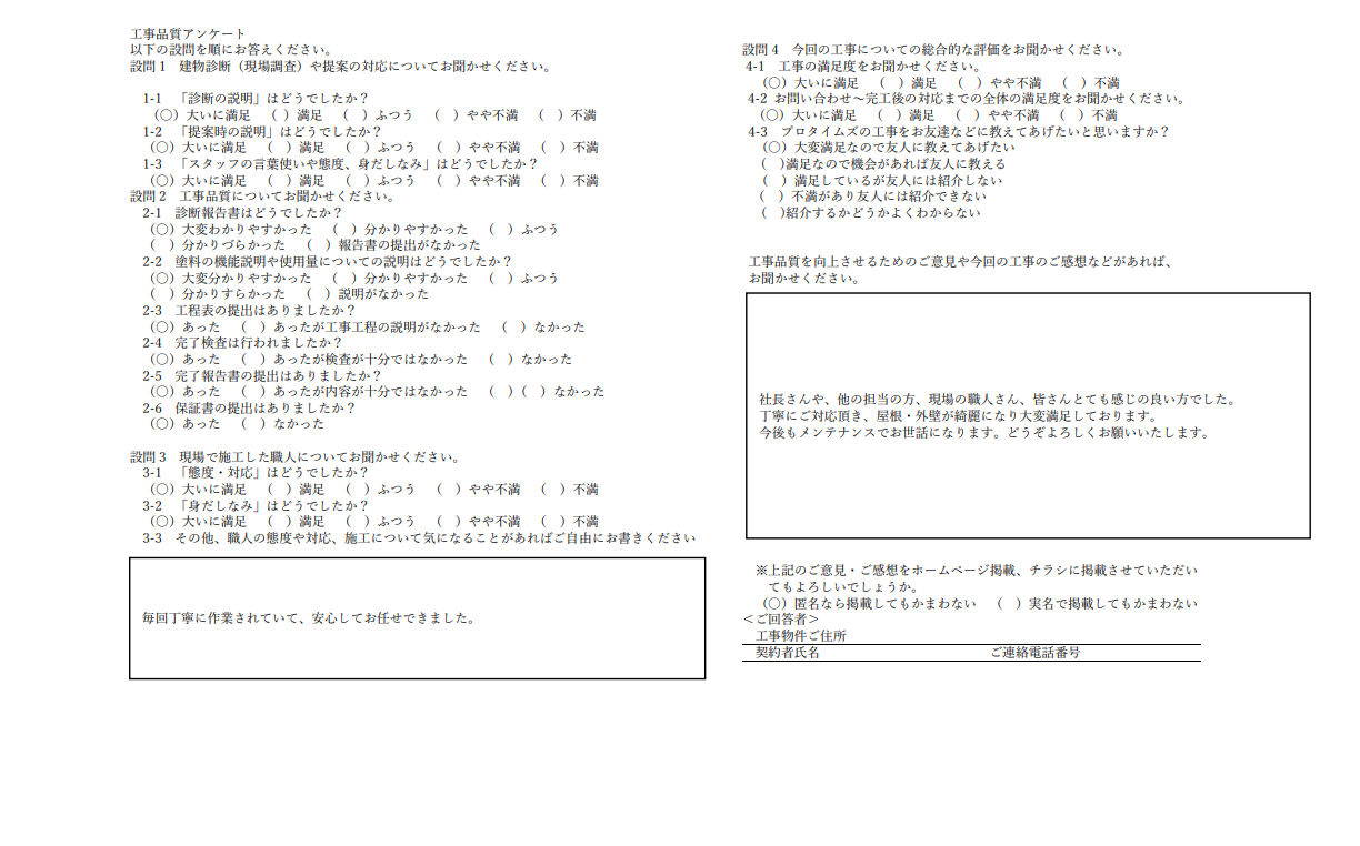 今後もメンテナンスでお世話になります。どうぞよろしくお願いいたします。