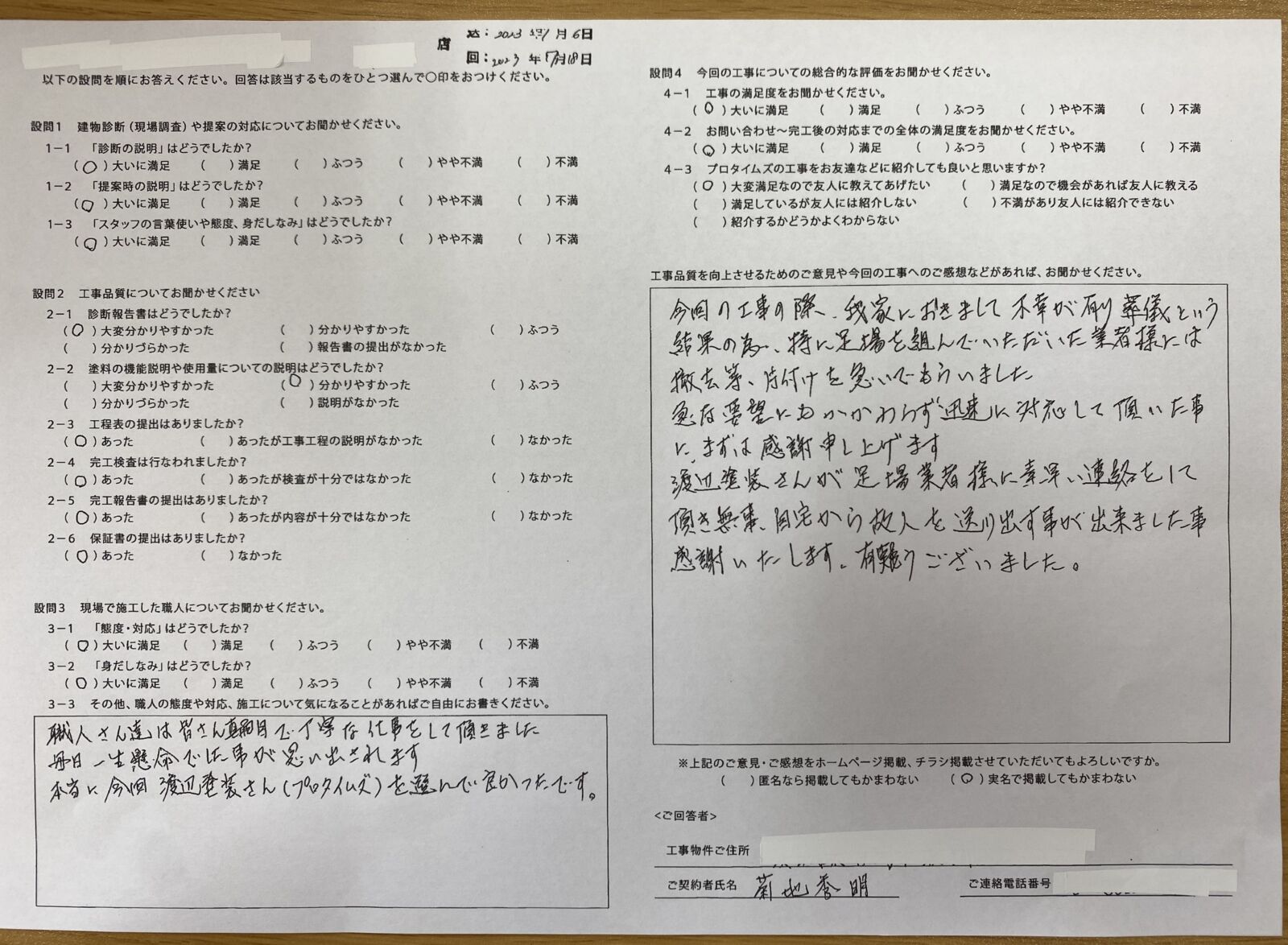 本当に渡辺塗装さん(プロタイムズ)を選んで良かったです。
