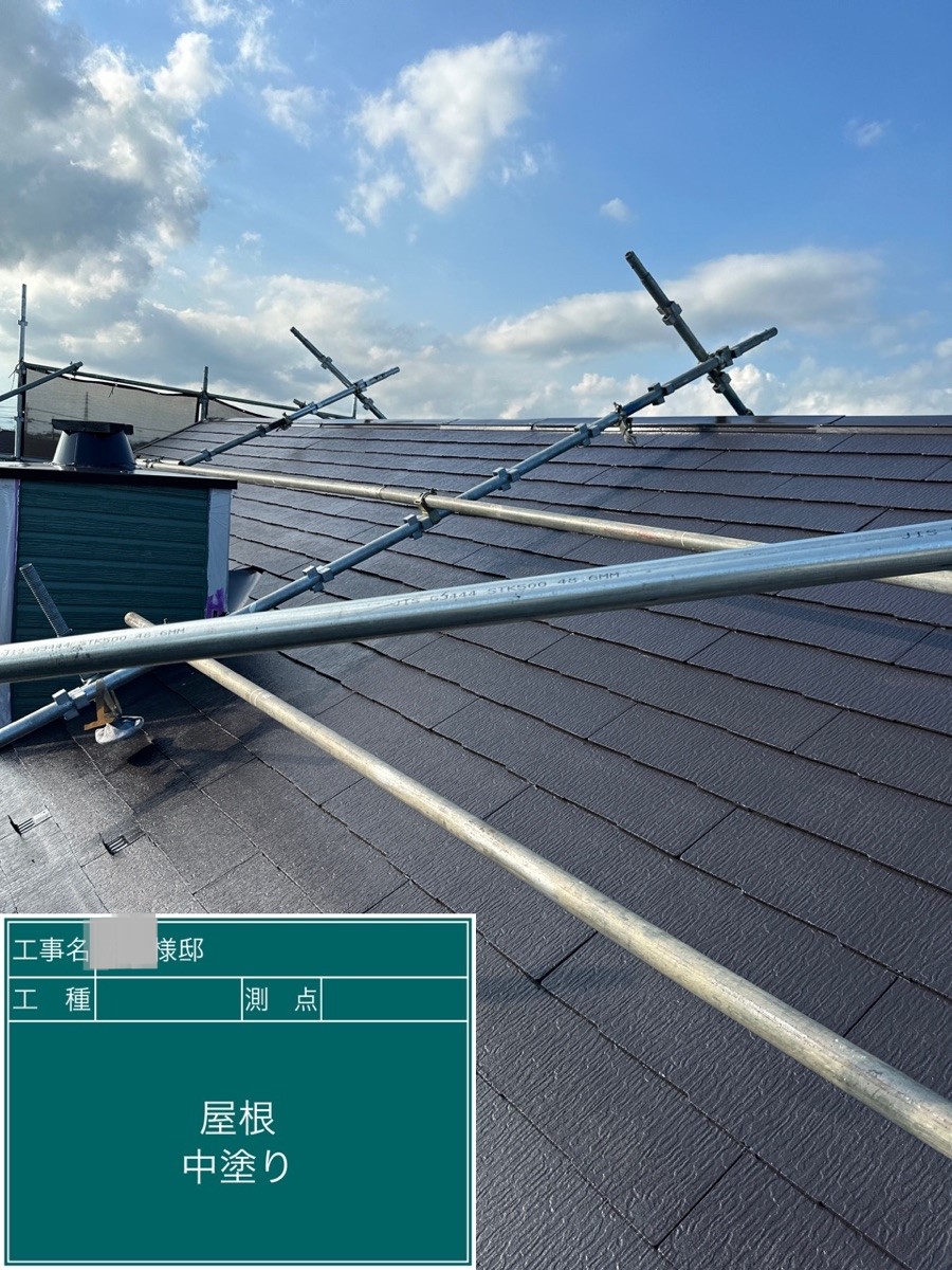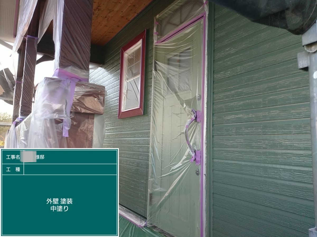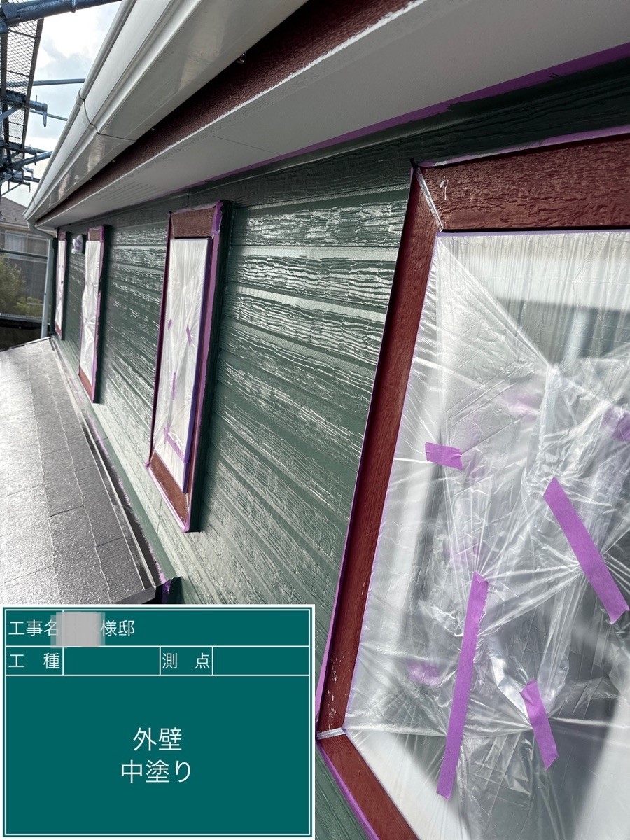 中塗り➡上塗りと2回に分けて塗装する事で性能を耐久年数の間しっかり持続させるために中塗りの塗装が必須です。