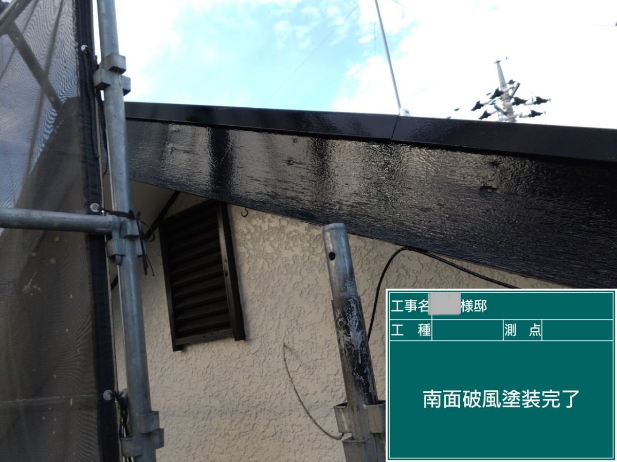 南面破風の塗装を行いました。