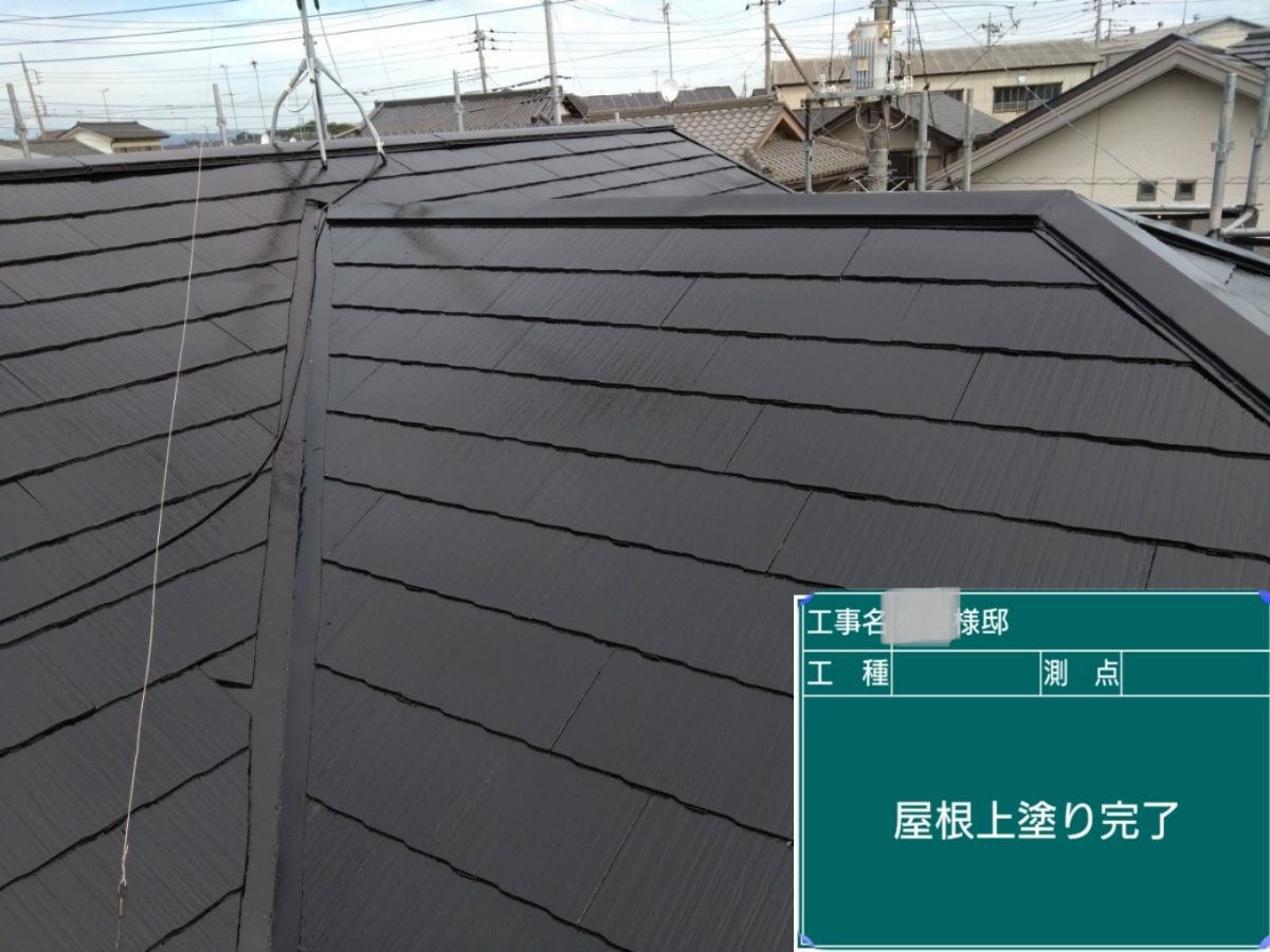 屋根の上塗りを行いました。