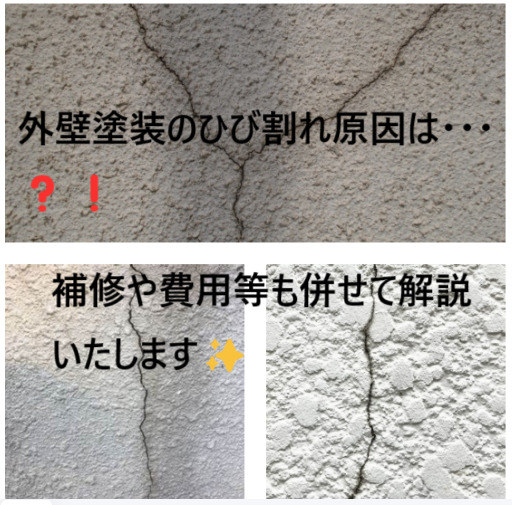 外壁塗装のひび割れ原因は・・・❓❗補修や費用等も併せて解説いたします✨