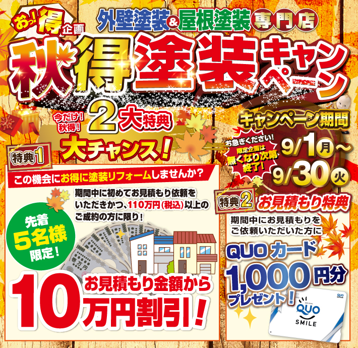 🍁🍁🍁【お得情報】秋得キャンペーンを開催します🍁🍁🍁