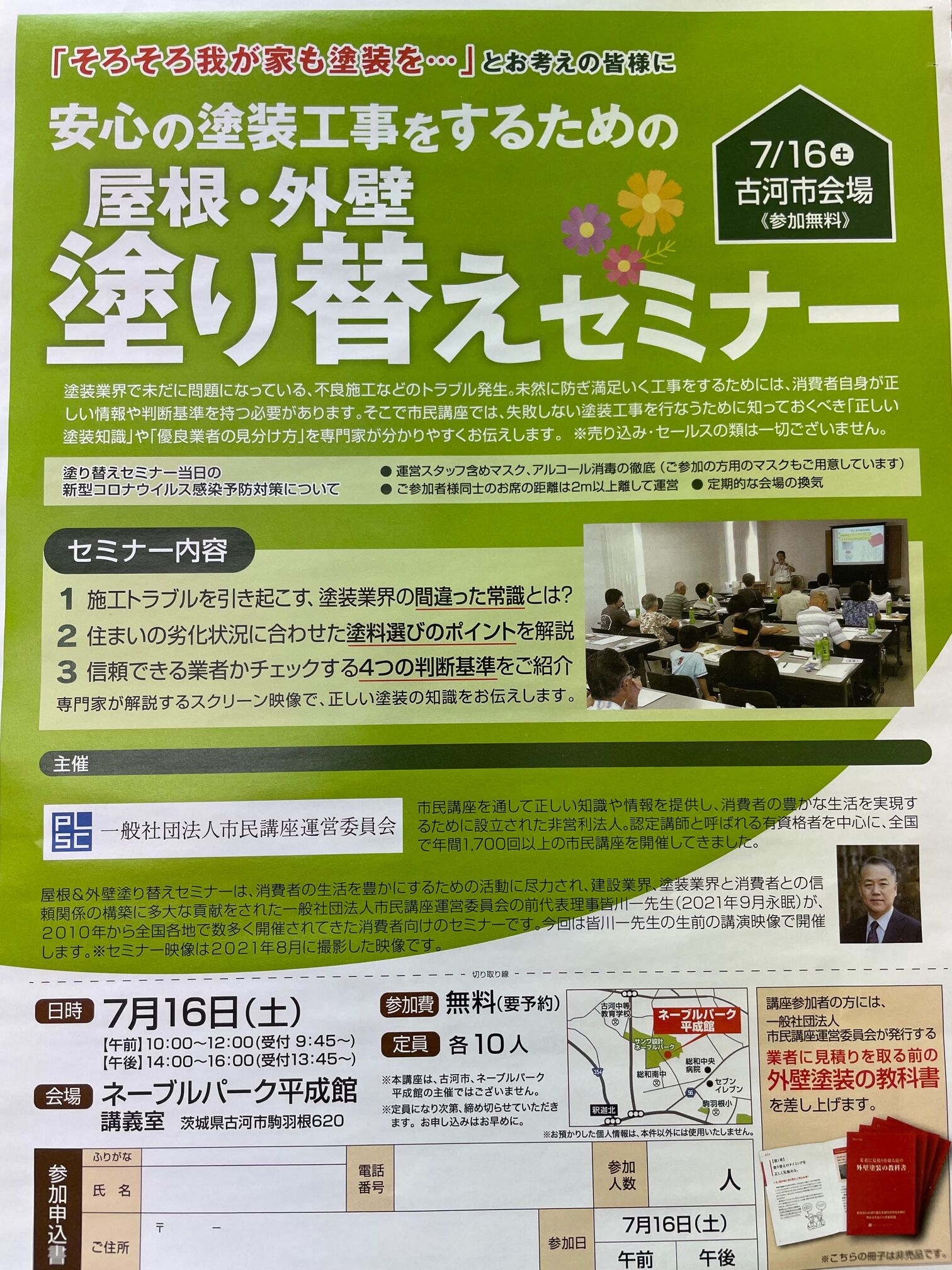 7月16(土)屋根・外壁塗り替えセミナーのお知らせ✐