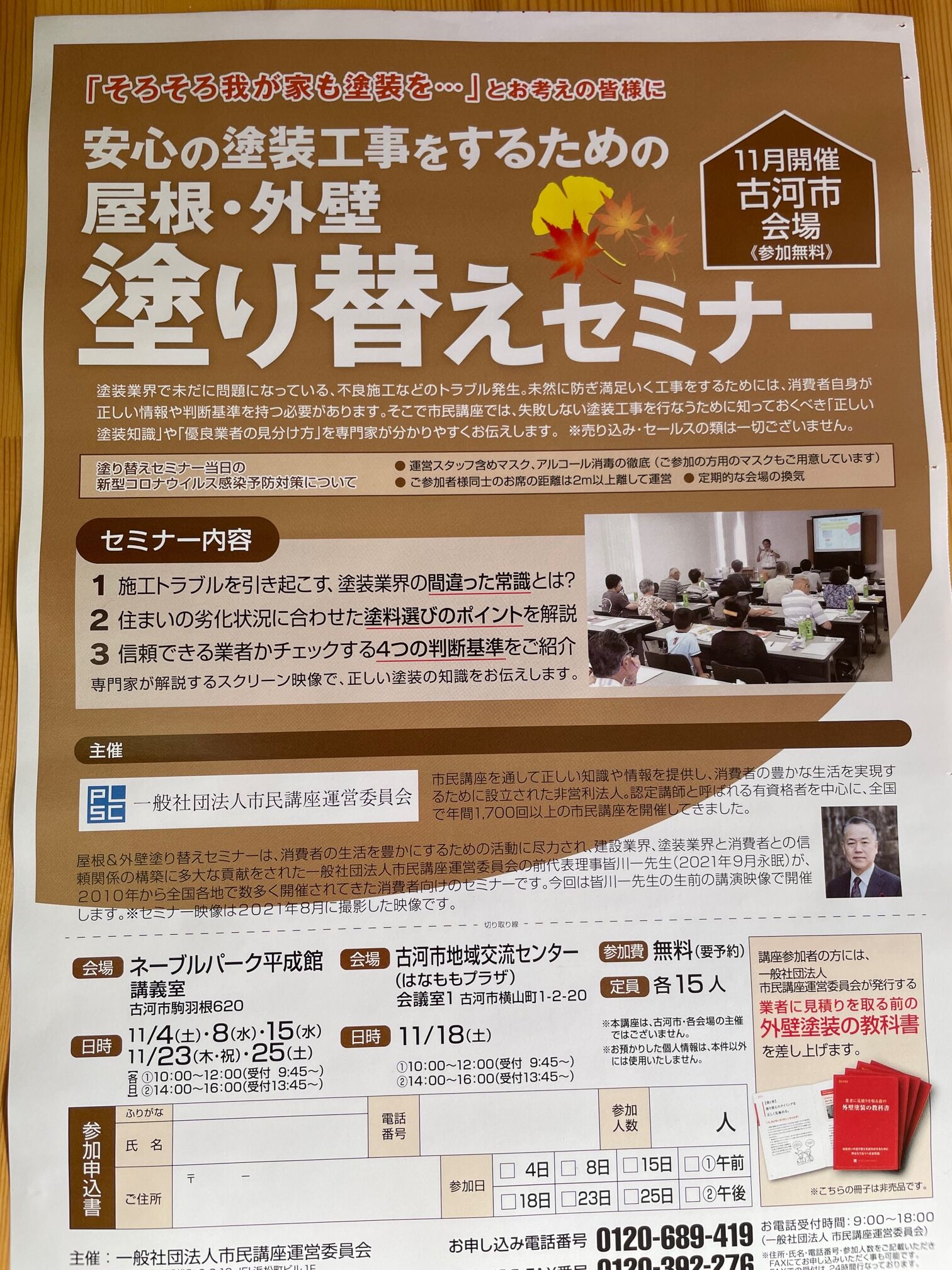 11月4日(土)8日(水)15日(水)18日(土)23日(木)25日(土)屋根・外壁塗り替えセミナーのお知らせ✐