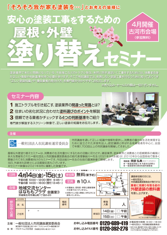 4月14日(金)15日(土)屋根・外壁塗り替えセミナーのお知らせ✐※14日(金)は中止となりました。