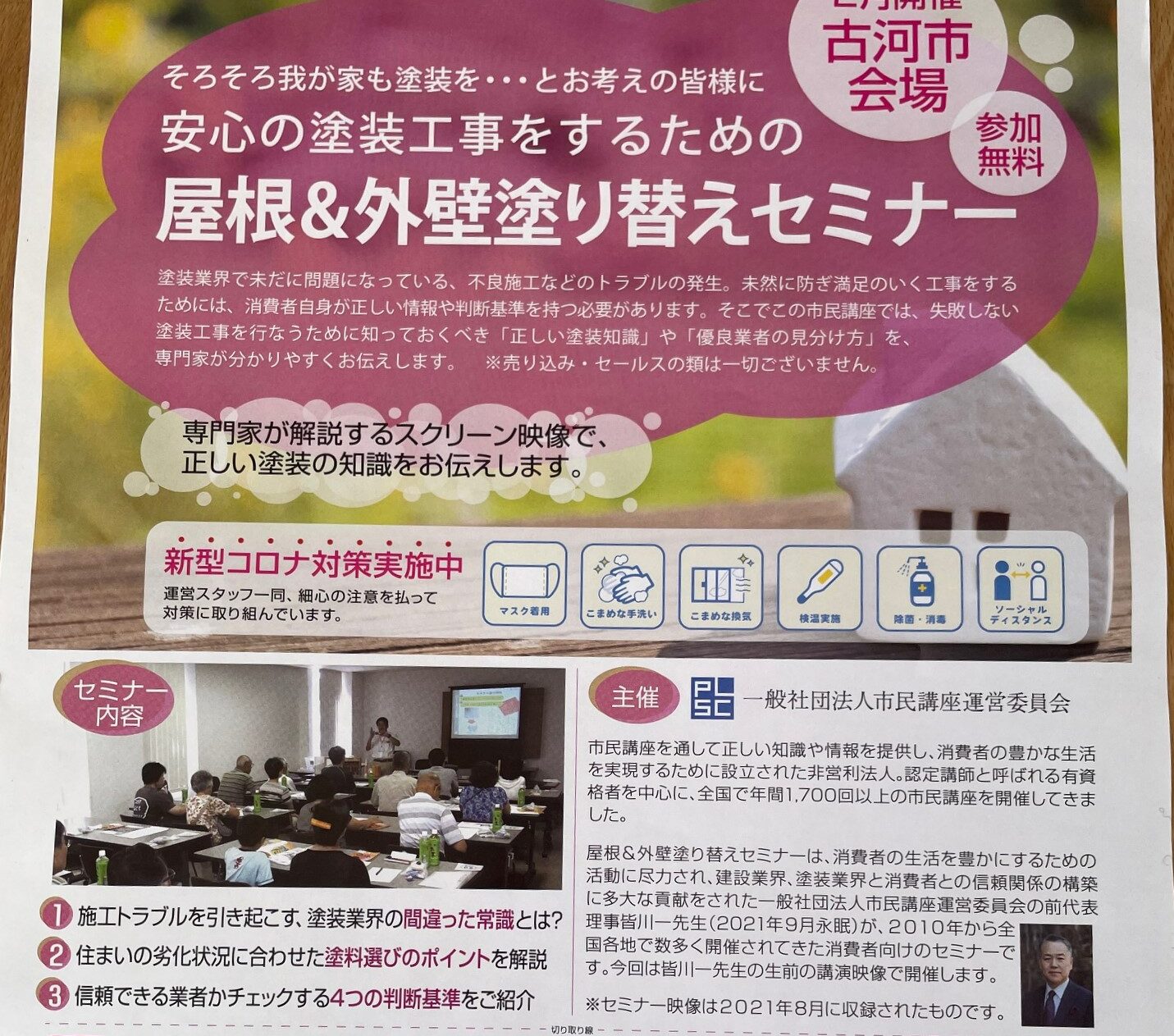 3月10日(金)11日(土)屋根・外壁塗り替えセミナーのお知らせ✐※11日(土)の午後は中止となりました。