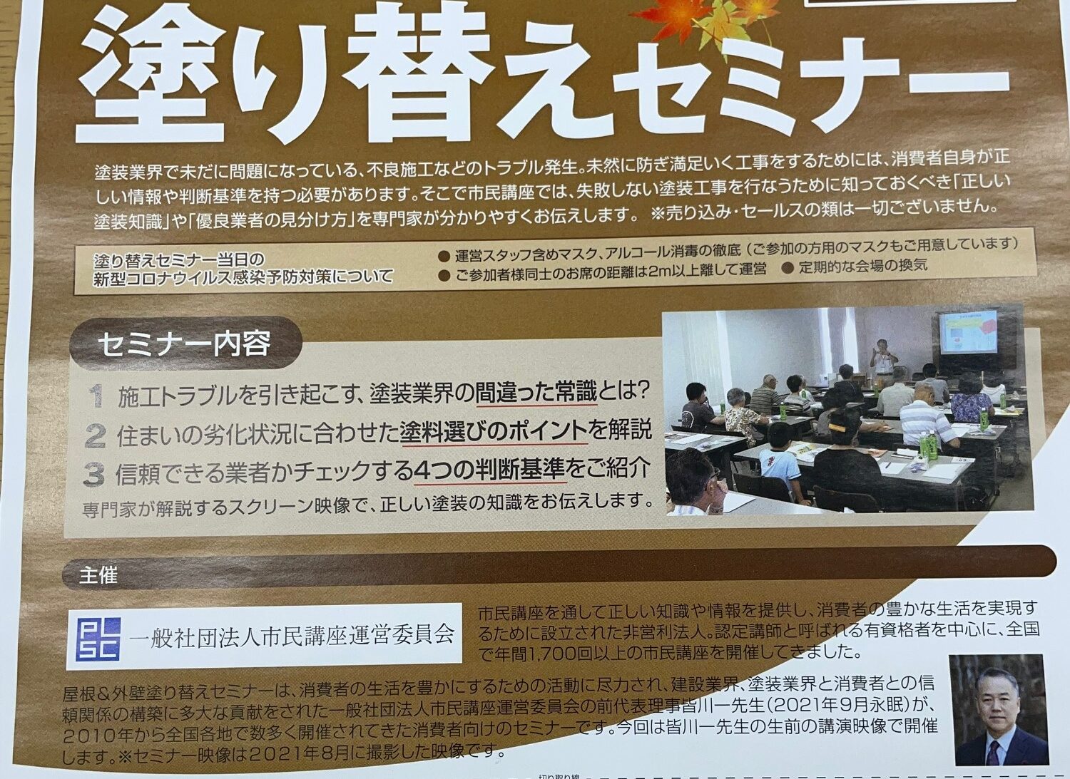 10月21日(金)22日(土)屋根・外壁塗り替えセミナーのお知らせ✐※21日(金)午前の部・22(土)一日、キャンセルになりました。
