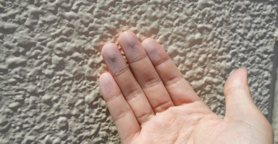 外壁に手で触れると白い粉がついてくるのは劣化のサイン。塗り替え時期です。
