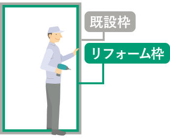 既設の枠を残して新しい枠を取り付ける「カバー工法」。