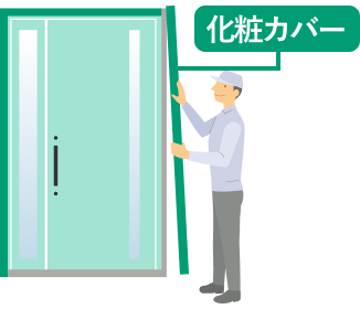 今あるドア枠を残し、リフォーム枠を取り付ける「カバー工法」だから、わずか1日で新しいドアへ取り換えできます。